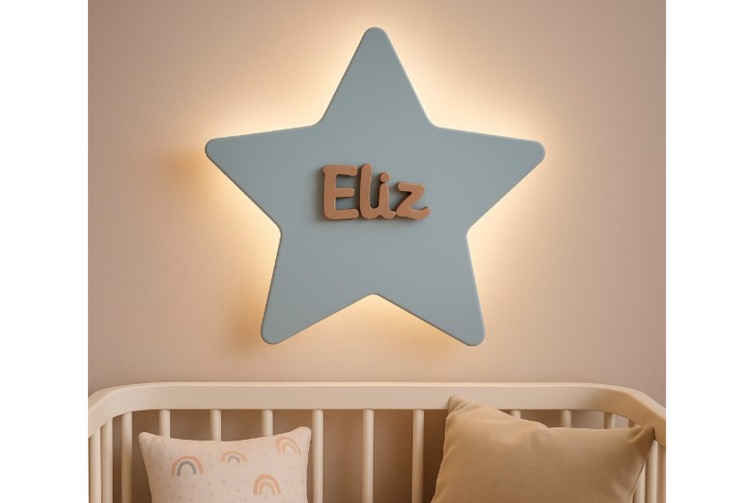 Bebek ve çocuk odaları için sevgiyle hazırlanan yıldız lambamız, 4 kat el boyaması ile hazırlanır. Günışığı lambalarımız sayesinde güvenli ve huzurlu bir uyku ortamı oluşturur.