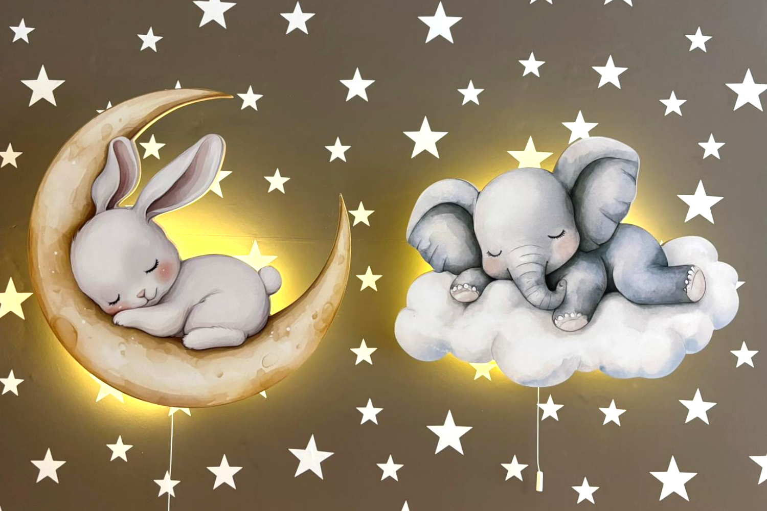 Bebek ve çocuk odaları için sevgiyle hazırlanan bu lamba setimiz, ahşap üzerine uygulanan özel baskı tekniği ile üretilir ve bebeğin ismine özel olarak kişiselleştirilir. Günışığı lambalarımız sayesinde güvenli ve huzurlu bir uyku ortamı oluşturur.