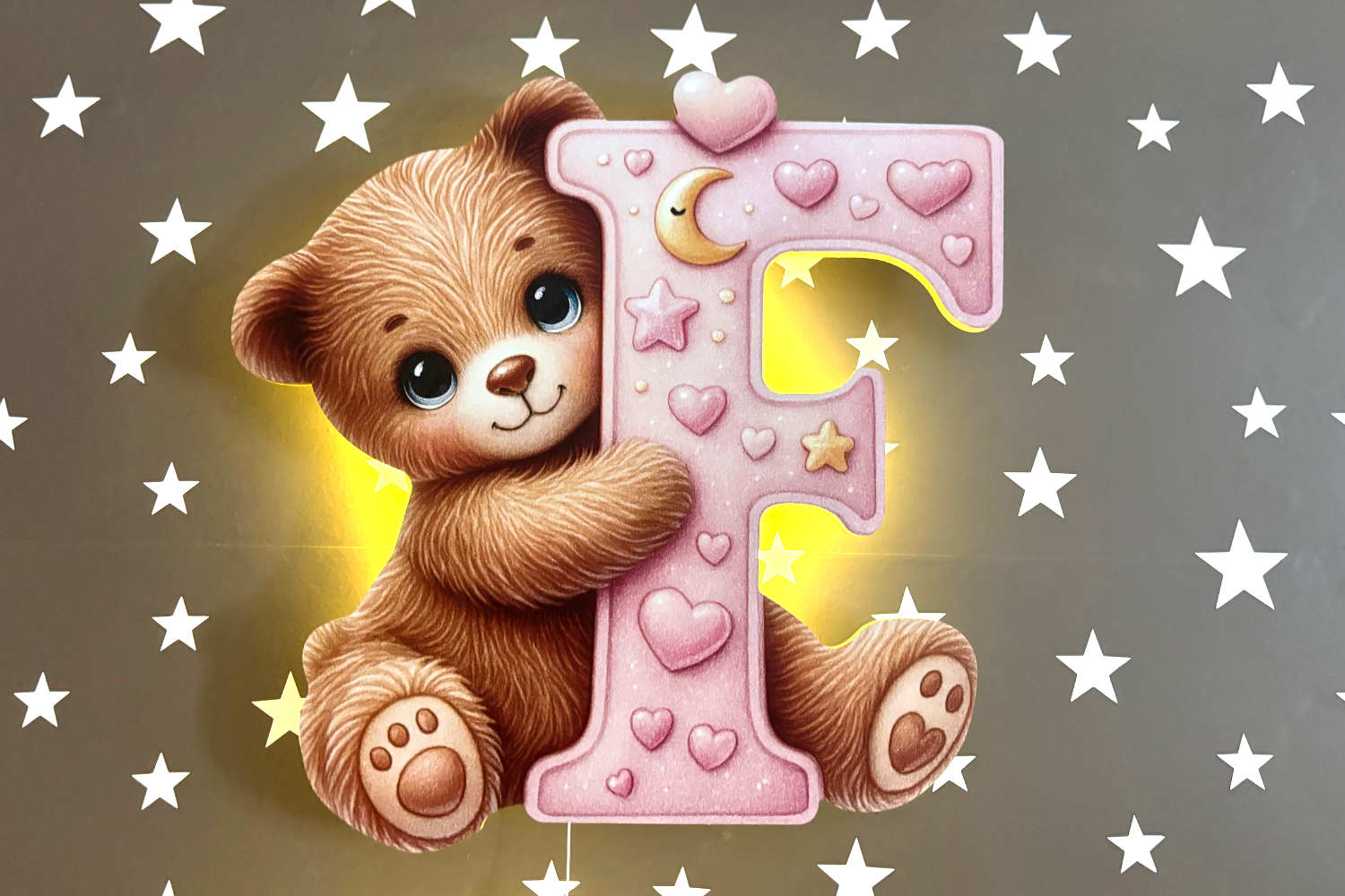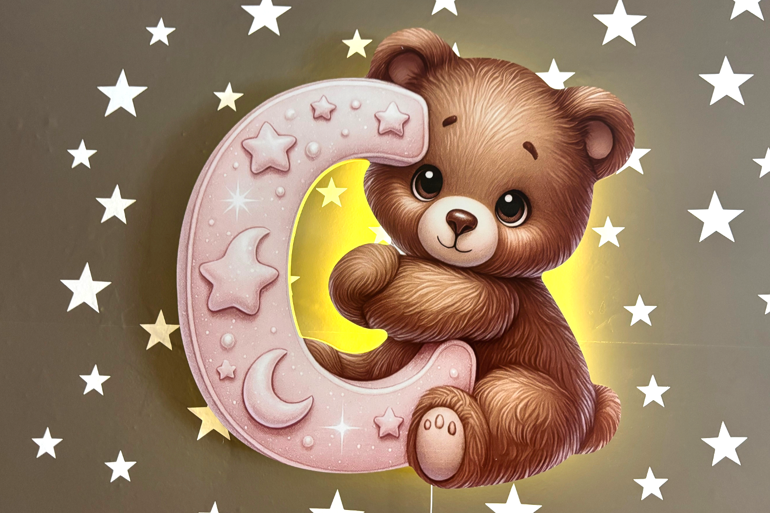 Bebek ve çocuk odaları için sevgiyle hazırlanan ayıcıklı harf lambalarımız, ahşap üzerine uygulanan özel baskı tekniği ile üretilir ve bebeğin ismine özel olarak kişiselleştirilir. Günışığı lambalarımız sayesinde güvenli ve huzurlu bir uyku ortamı oluşturur.