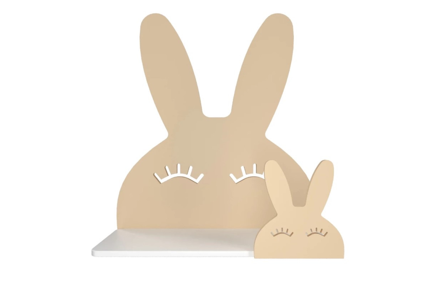 Hem fonksiyonel hem sevimli tavşan duvar rafı; oyuncakları, kitapları düzenleyecek çok amaçlı raf sunar.