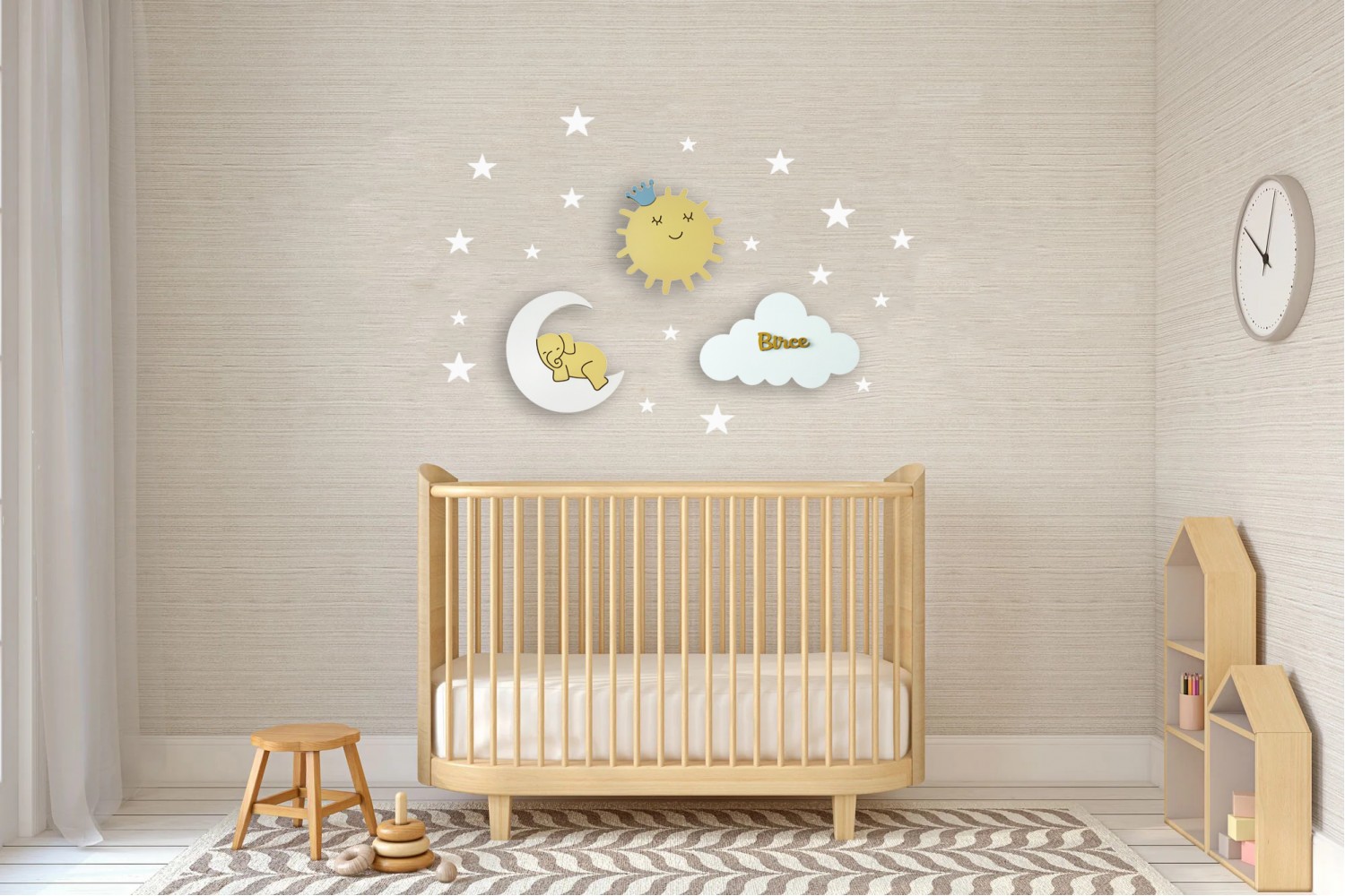 Bebek ve çocuk odaları için sevgiyle hazırlanan bu lamba setimiz, 4 kat el boyaması ile hazırlanır ve bebeğin ismine özel kişiselleştirilir. Günışığı lambalarımız sayesinde güvenli ve huzurlu bir uyku ortamı oluşturur.