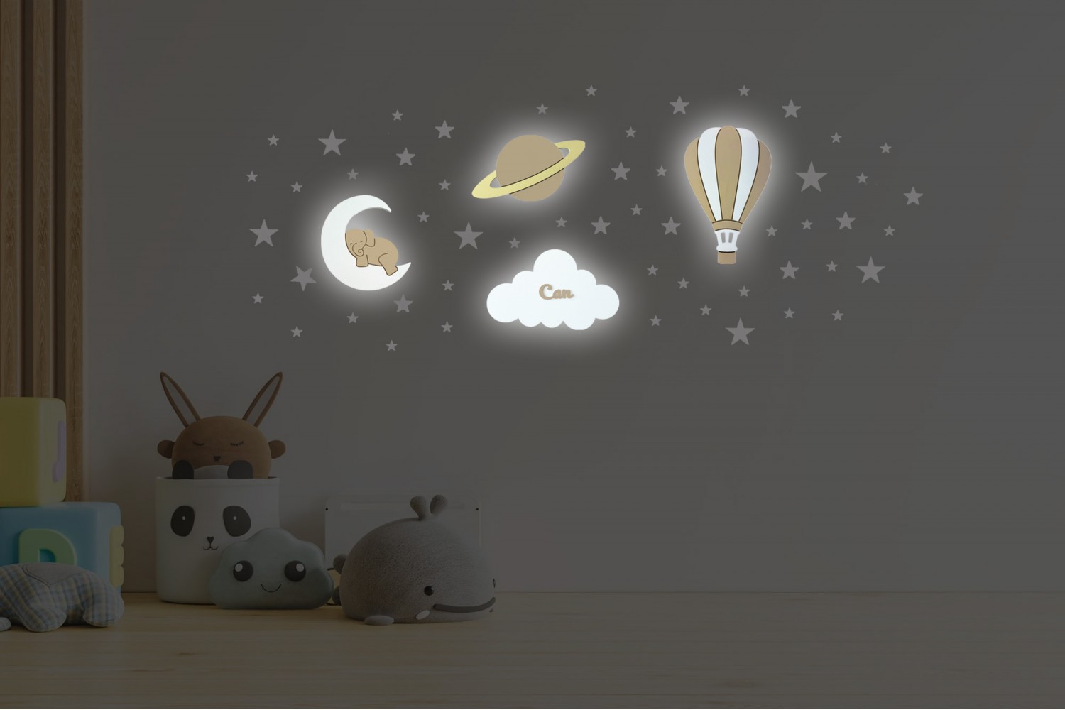 Bebek ve çocuk odaları için sevgiyle hazırlanan bu lamba setimiz, 4 kat el boyaması ile hazırlanır ve bebeğin ismine özel kişiselleştirilir. Günışığı lambalarımız sayesinde güvenli ve huzurlu bir uyku ortamı oluşturur.