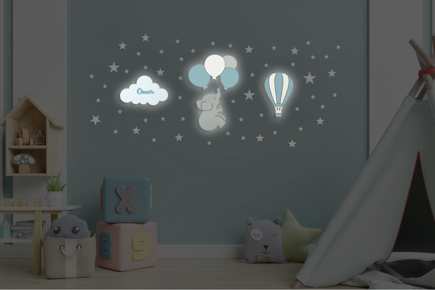 Bebek ve çocuk odaları için sevgiyle hazırlanan bu lamba setimiz, 4 kat el boyaması ile hazırlanır ve bebeğin ismine özel kişiselleştirilir. Günışığı lambalarımız sayesinde güvenli ve huzurlu bir uyku ortamı oluşturur.