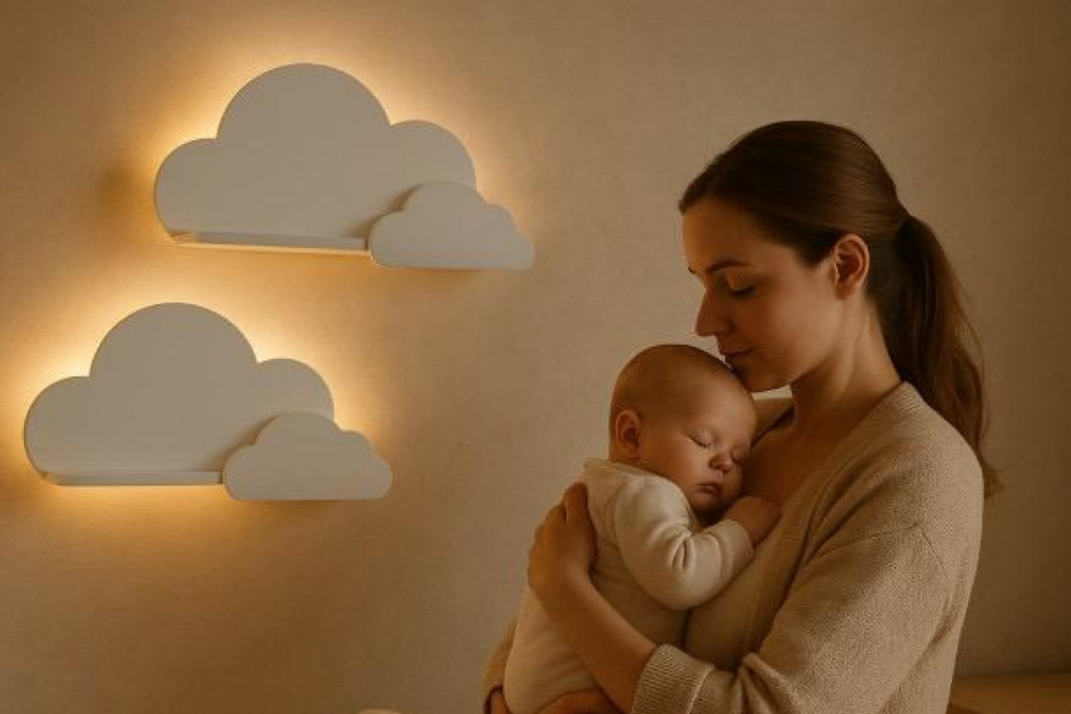 Hem fonksiyonel hem sevimli bulut raf lambalarımız, bebeğinizin güvenle uyuyabileceği yumuşak ışık sağlar ve oyuncakları, kitapları düzenleyecek çok amaçlı raf sunar.