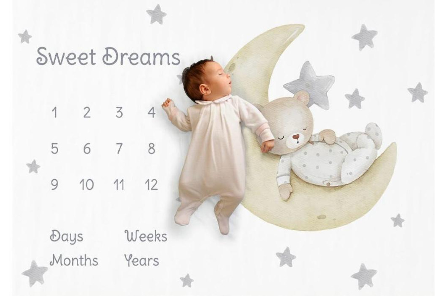 Yumuşacık dokusu, minik bedenlere nazikçe sarılırken; siz de her ay gelişimini sevgiyle fotoğraflayabilirsiniz.